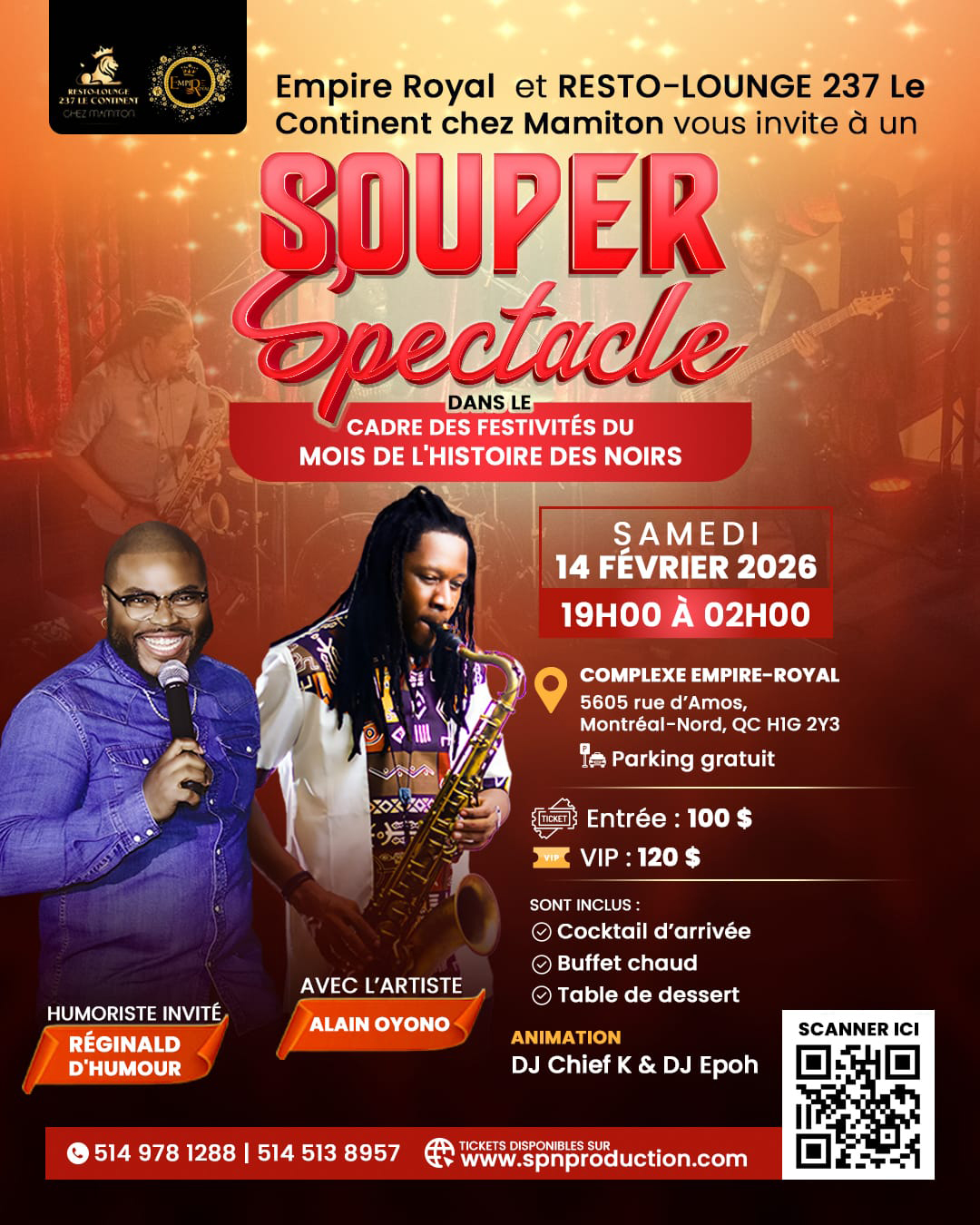L’événement se déroulera au COMPLEXE EMPIRE ROYAL au 5605 rue d’Amos, Montréal-Nord, QC H1G 2Y3.